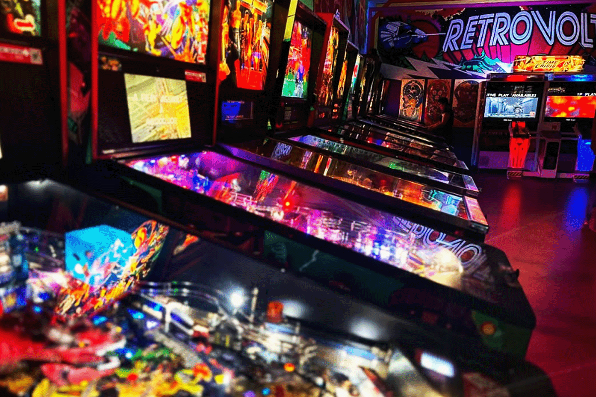 Retrovolt Arcade features a collection of classic arcade games and pinball machines. Guests can enjoy retro favorites along with pinball in an awesome retro arcade environment.